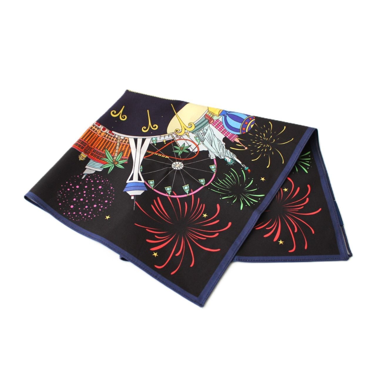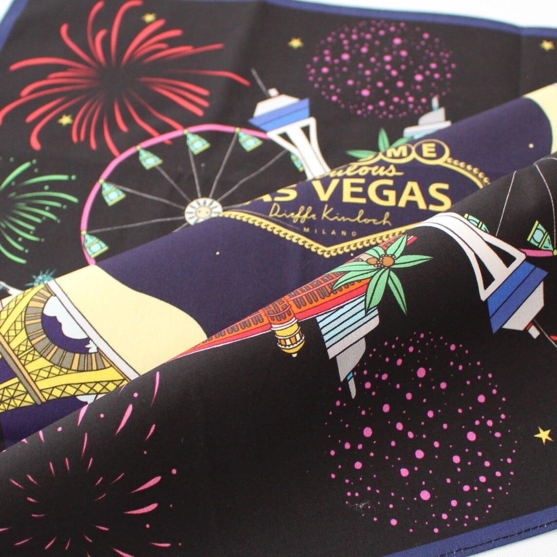 ラスベガスをモチーフにしたユニークなデザインが特徴のハンカチ。