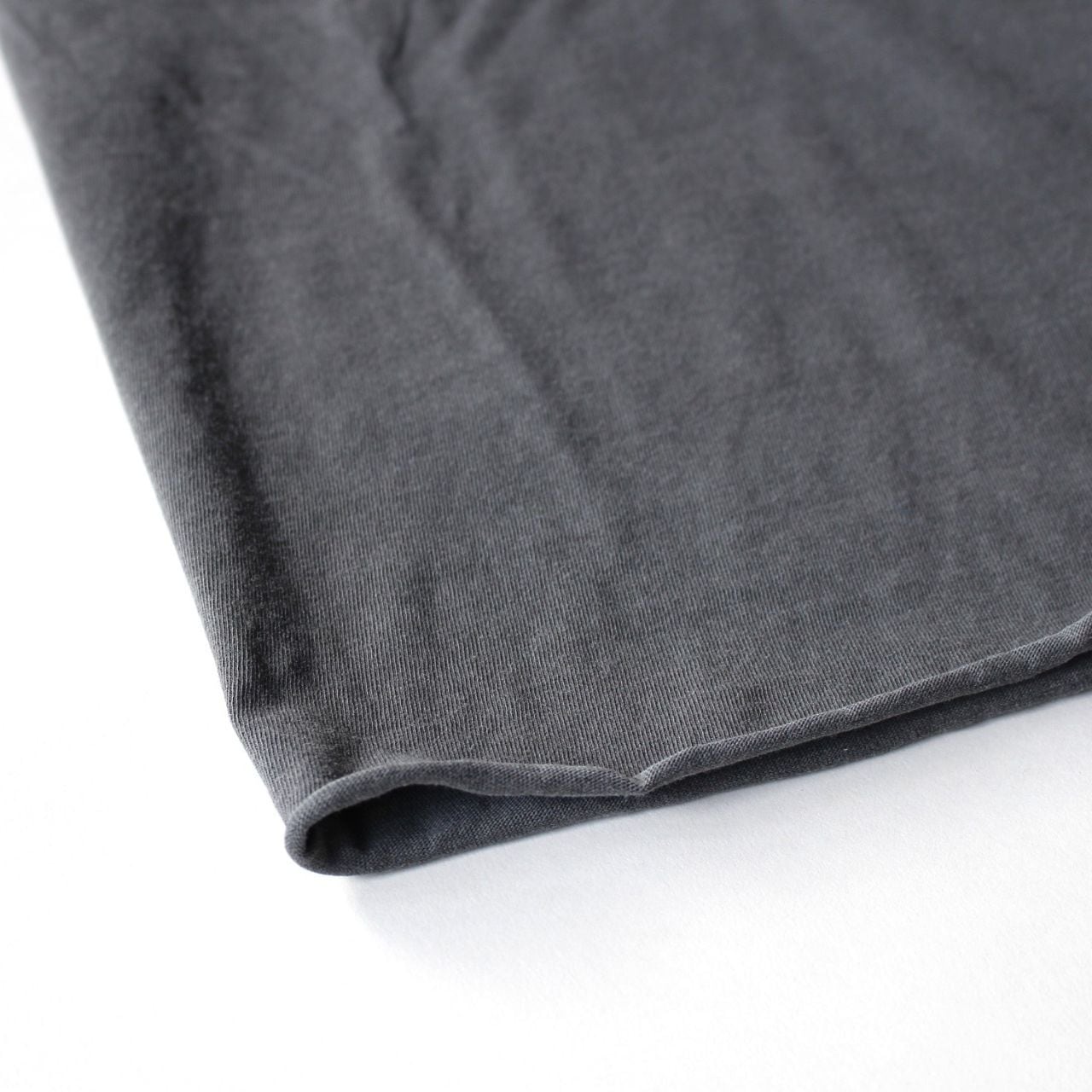 ・裾の加工は工程上、お届け時点においてカールが目立たないことがありますが、着用やお洗濯を重ねることで、生地が丸まり、自然なカール感が出てきます。